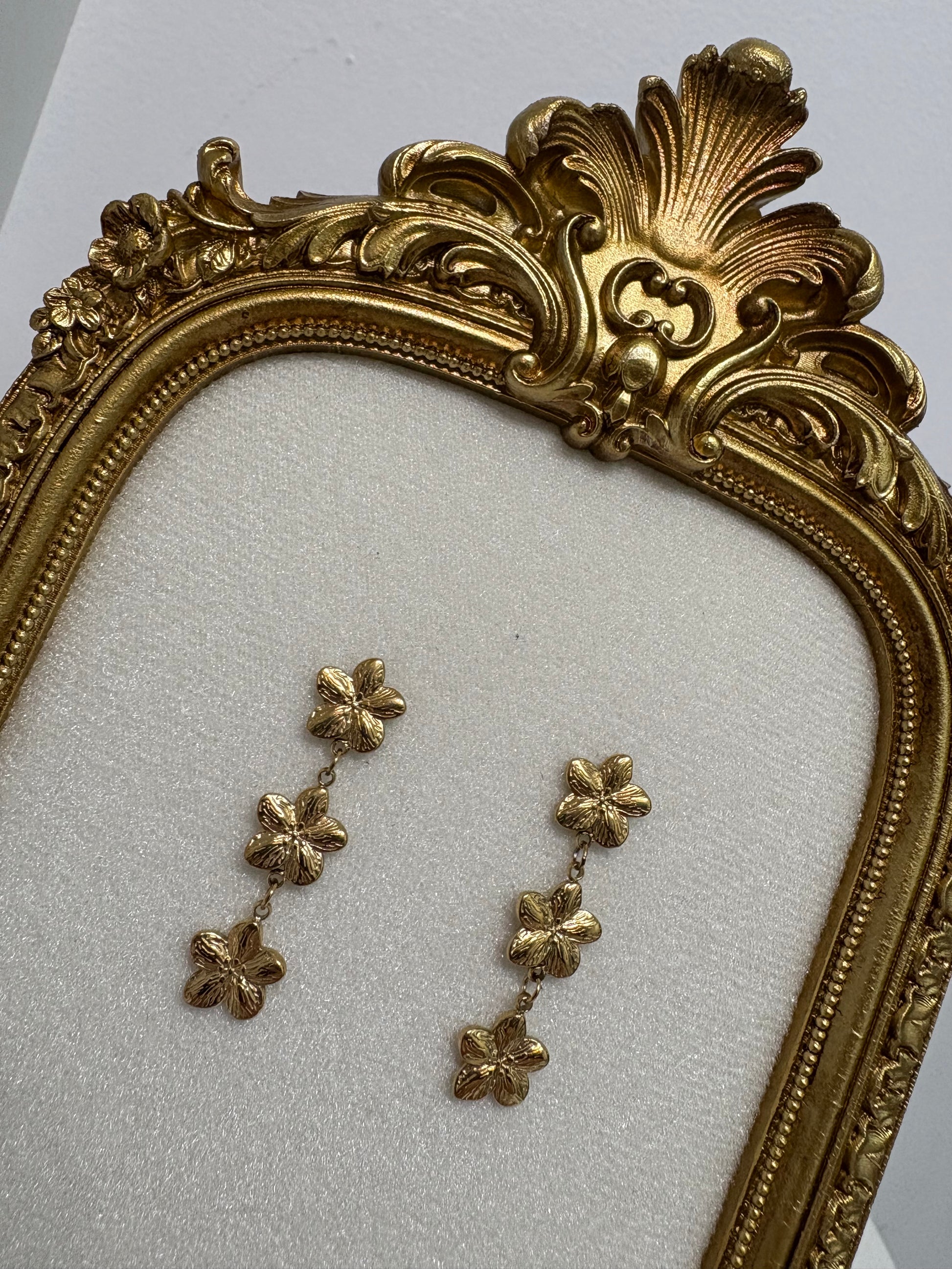 Des boucles d’oreilles pendantes en forme de fleur, élégantes, hypoallergéniques, durables et waterproof. Leur design raffiné apporte une touche de sophistication et de féminité, sublimant vos tenues avec style.